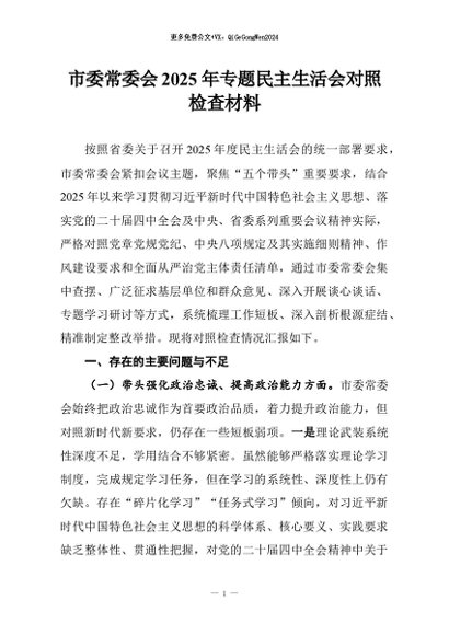 / 【七哥公文】2026年:市委常委会2025年专题民主生活会对照检查材料+更多免费公文+VX:QiGeGongWen2024