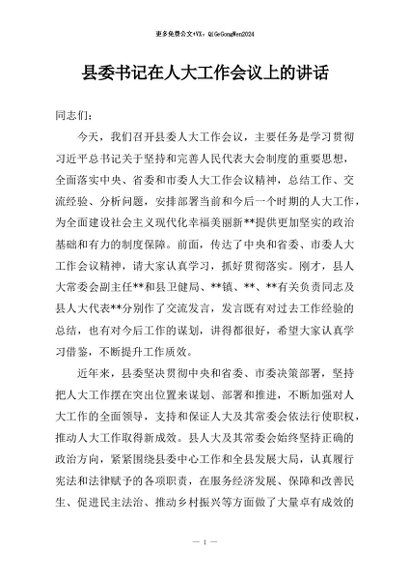 / 【七哥公文】2026年:县委书记在人大工作会议上的讲话+更多免费公文+VX:QiGeGongWen2024