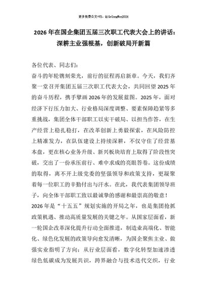 / 【七哥公文】2026年:2026年在国企集团五届三次职工代表大会上的讲话+更多免费公文+VX:QiGeGongWen2024