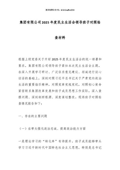 【七哥公文】2026年:集团有限公司2025年度民主生活会领导班子对照检查材料_副本2+更多免费公文+VX:QiGeGongWen2024