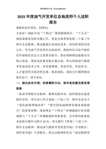 / 【七哥公文】2026年:2025年度油气开发单位总地质师个人述职报告+更多免费公文+VX:QiGeGongWen2024