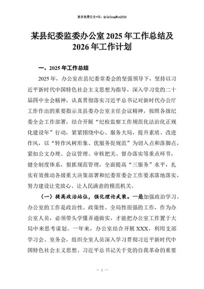 【七哥公文】2026年:某县纪委监委办公室2025年工作总结及2026年工作计划+更多免费公文+VX:QiGeGongWen2024