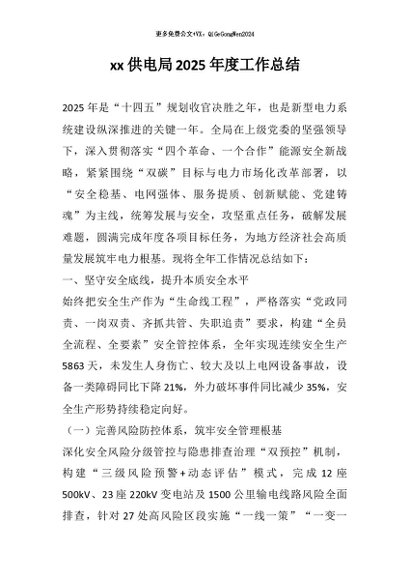 / 【七哥公文】2026年:xx供电局2025年度工作总结+更多免费公文+VX:QiGeGongWen2024
