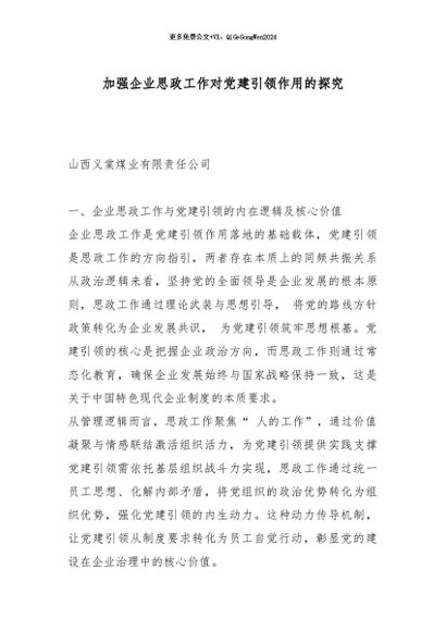 / 【七哥公文】2026年:加强企业思政工作对党建引领作用的探究_副本+更多免费公文+VX:QiGeGongWen2024