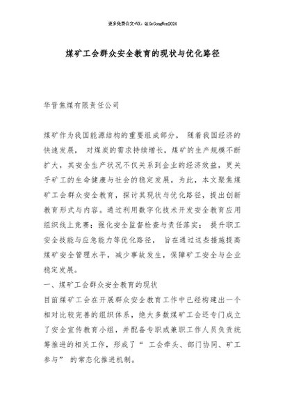 / 【七哥公文】2026年:煤矿工会群众安全教育的现状与优化路径_副本+更多免费公文+VX:QiGeGongWen2024
