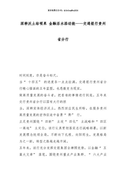 【七哥公文】2026年:深耕沃土结硕果 金融活水添动能——交通银行贵州省分行_副本+更多免费公文+VX:QiGeGongWen2024