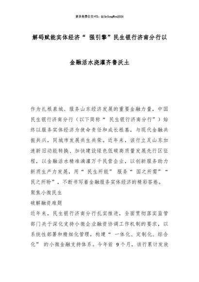 【七哥公文】2026年:解码赋能实体经济“ 强引擎”民生银行济南分行以金融活水浇灌齐鲁沃土_副本+更多免费公文+VX:QiGeGongWen2024
