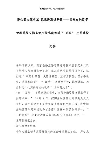 【七哥公文】2026年:凝心聚力筑根基 锐意进取谱新篇——国家金融监督管理总局安阳监管支局扎实推进“ 五型” 支局建设纪实_副本+更多免费公文+VX:QiGeGongWen2024