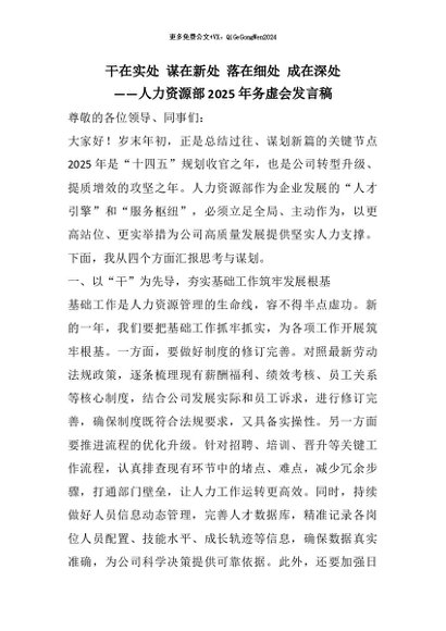 【七哥公文】2026年:干在实处 谋在新处 落在细处 成在深处——人力资源部2025年务虚会发言稿+更多免费公文+VX:QiGeGongWen2024