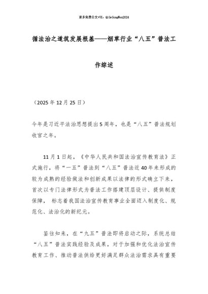 【七哥公文】2026年:循法治之道筑发展根基——烟草行业“八五”普法工作综述_副本+更多免费公文+VX:QiGeGongWen2024