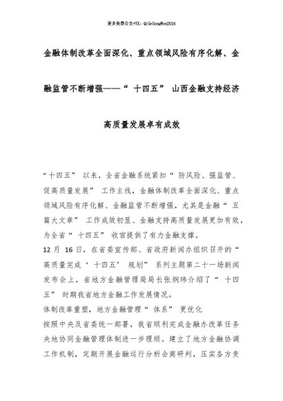 【七哥公文】2026年:金融体制改革全面深化、重点领域风险有序化解、金融监管不断增强——“ 十四五” 山西金融支持经济高质量发展卓有成效_副本+更多免费公文+VX:QiGeGongWen2024