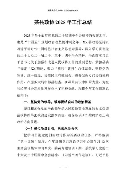 / 【七哥公文】2026年:某县政协2025年工作总结+更多免费公文+VX:QiGeGongWen2024