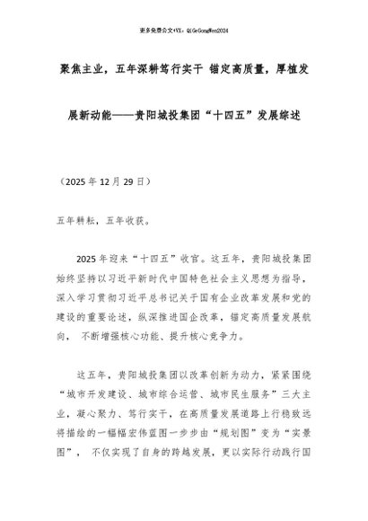 【七哥公文】2026年:聚焦主业,五年深耕笃行实干 锚定高质量,厚植发展新动能——贵阳城投集团“十四五”发展综述_副本+更多免费公文+VX:QiGeGongWen2024