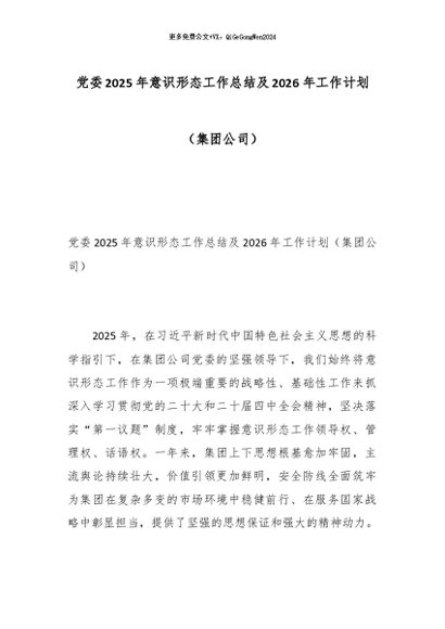 【七哥公文】2026年:党委2025年意识形态工作总结及2026年工作计划(集团公司)_副本+更多免费公文+VX:QiGeGongWen2024