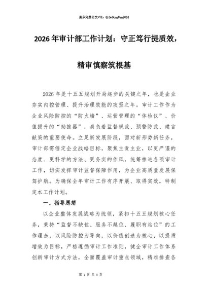 【七哥公文】2026年:2026年审计部工作计划:守正笃行提质效,精审慎察筑根基+更多免费公文+VX:QiGeGongWen2024