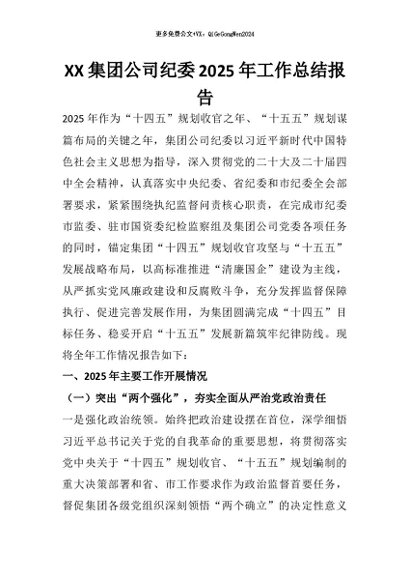 / 【七哥公文】2026年:XX集团公司纪委2025年工作总结报告+更多免费公文+VX:QiGeGongWen2024