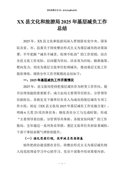 / 【七哥公文】2026年:XX县文化和旅游局2025年基层减负工作总结+更多免费公文+VX:QiGeGongWen2024