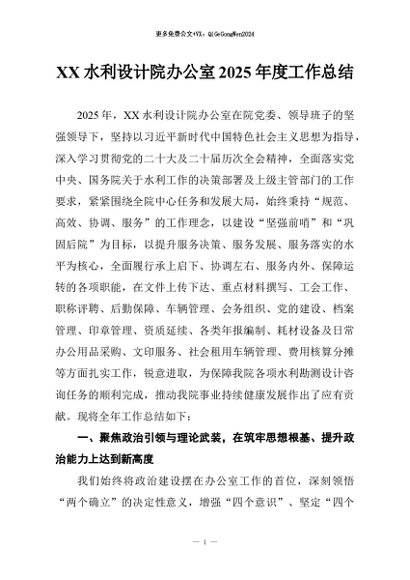 / 【七哥公文】2026年:XX水利设计院办公室2025年度工作总结+更多免费公文+VX:QiGeGongWen2024
