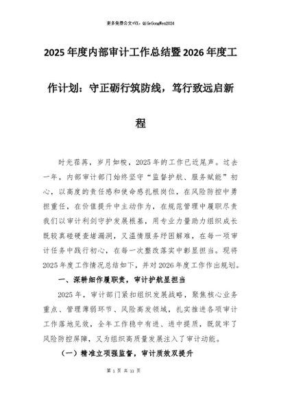 【七哥公文】2026年:2025年度内部审计工作总结暨2026年度工作计划:守正砺行筑防线,笃行致远启新程+更多免费公文+VX:QiGeGongWen2024
