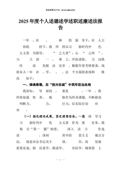 / 【七哥公文】2026年:2025年度个人述德述学述职述廉述法报告+更多免费公文+VX:QiGeGongWen2024