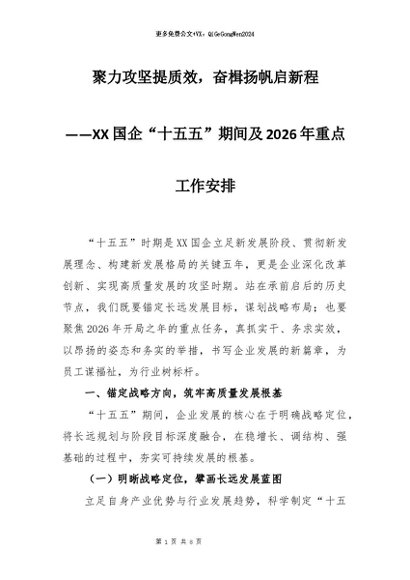【七哥公文】2026年:XX国企“十五五”期间及2026年重点工作安排:聚力攻坚提质效,奋楫扬帆启新程(1)+更多免费公文+VX:QiGeGongWen2024