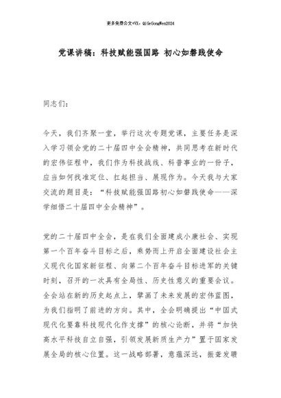 / 【七哥公文】2026年:党课讲稿:科技赋能强国路 初心如磐践使命_副本+更多免费公文+VX:QiGeGongWen2024