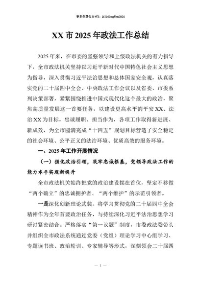 【七哥公文】2026年:XX市2025年政法工作总结+更多免费公文+VX:QiGeGongWen2024