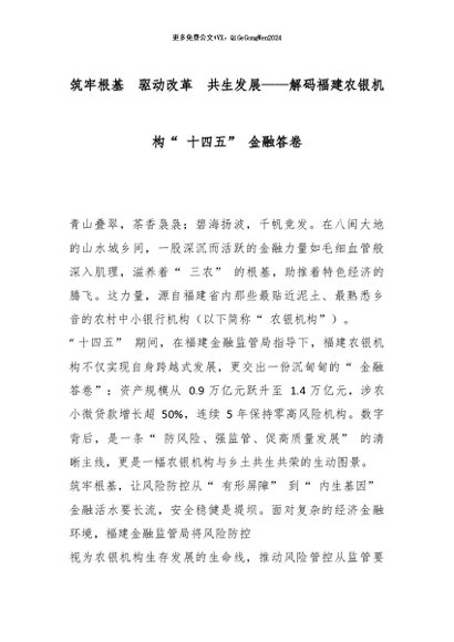 【七哥公文】2026年:筑牢根基 驱动改革 共生发展——解码福建农银机构“ 十四五” 金融答卷_副本+更多免费公文+VX:QiGeGongWen2024