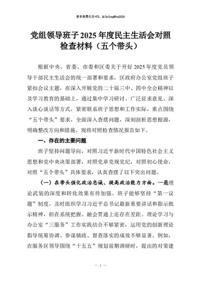 【七哥公文】2026年:党组领导班子2025年度民主生活会对照检查材料(五个带头)_副本+更多免费公文+VX:QiGeGongWen2024