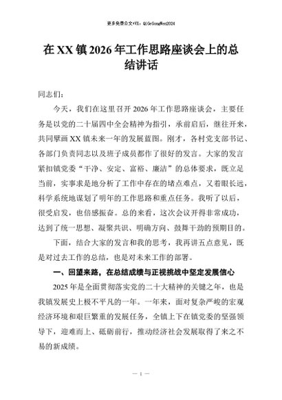 / 【七哥公文】2026年:在XX镇2026年工作思路座谈会上的总结讲话+更多免费公文+VX:QiGeGongWen2024
