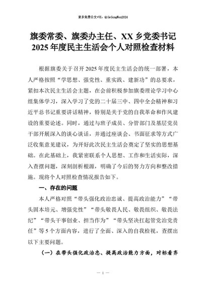 【七哥公文】2026年:旗委常委、旗委办主任、XX乡党委书记2025年度民主生活会个人对照检查材料_副本+更多免费公文+VX:QiGeGongWen2024