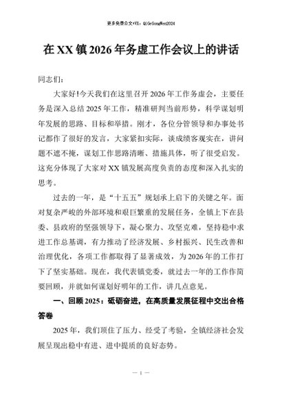 / 【七哥公文】2026年:在XX镇2026年务虚工作会议上的讲话+更多免费公文+VX:QiGeGongWen2024