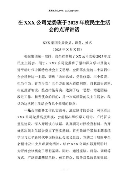 【七哥公文】2026年:在XXX公司党委班子2025年度民主生活会的点评讲话_副本+更多免费公文+VX:QiGeGongWen2024