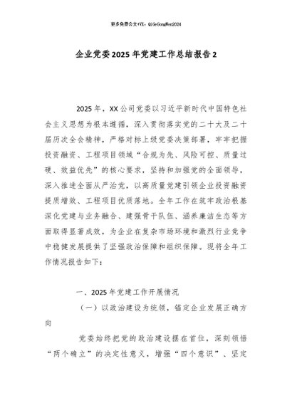/ 【七哥公文】2026年:企业党委2025年党建工作总结报告2+更多免费公文+VX:QiGeGongWen2024