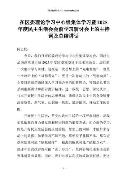 【七哥公文】2026年:在区委理论学习中心组集体学习暨2025年度民主生活会会前学习研讨会上的主持词及总结讲话_副本+更多免费公文+VX:QiGeGongWen2024
