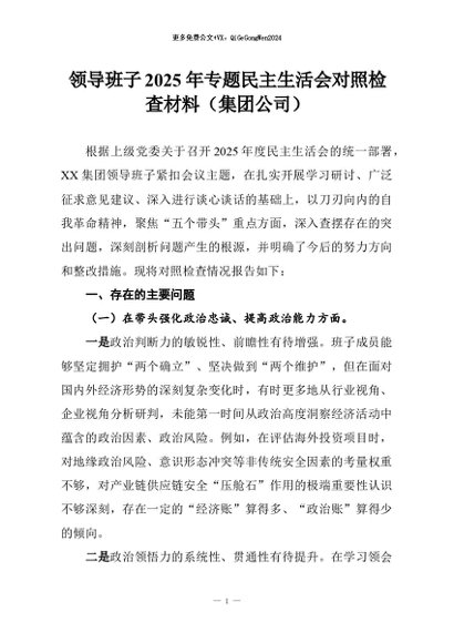 【七哥公文】2026年:领导班子2025年专题民主生活会对照检查材料(集团公司)_副本+更多免费公文+VX:QiGeGongWen2024