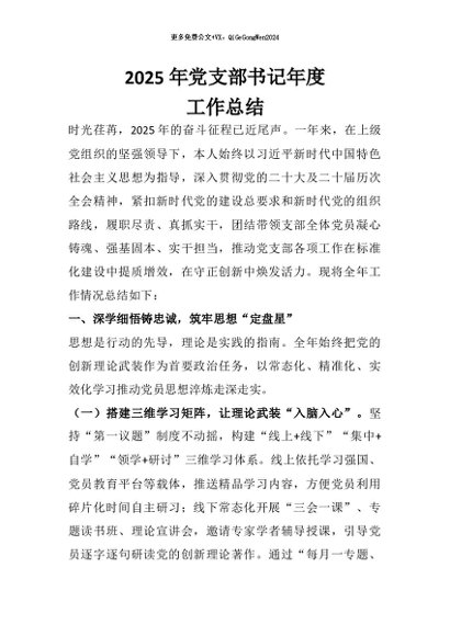 / 【七哥公文】2026年:2025年党支部书记年度工作总结+更多免费公文+VX:QiGeGongWen2024