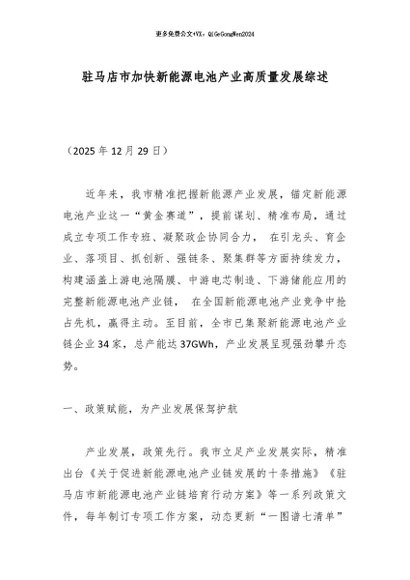 / 【七哥公文】2026年:驻马店市加快新能源电池产业高质量发展综述_副本+更多免费公文+VX:QiGeGongWen2024