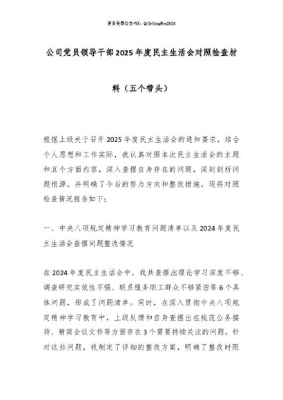 【七哥公文】2026年:公司党员领导干部2025年度民主生活会对照检查材料(五个带头)_副本+更多免费公文+VX:QiGeGongWen2024