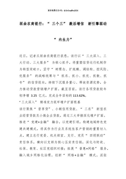 【七哥公文】2026年:垣曲农商银行:“ 三个三” 激活增信 新引擎驱动“ 内生力”_副本+更多免费公文+VX:QiGeGongWen2024