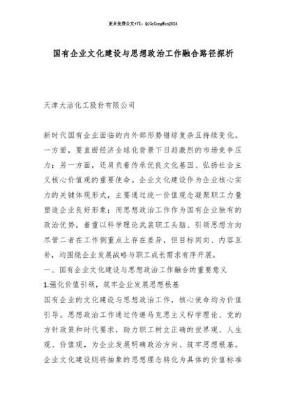 【七哥公文】2026年:国有企业文化建设与思想政治工作融合路径探析_副本+更多免费公文+VX:QiGeGongWen2024