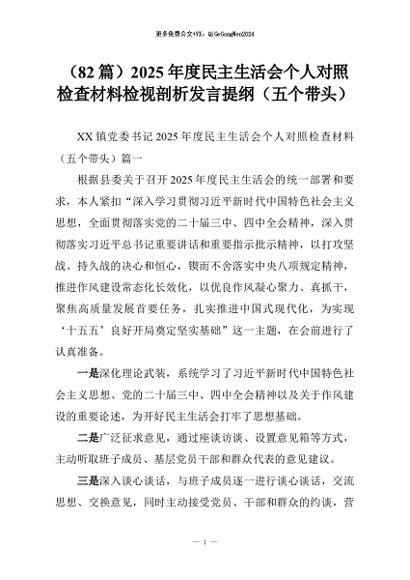 【七哥公文】2026年:(82篇)2025年度民主生活会个人对照检查材料检视剖析发言提纲(五个带头)_副本+更多免费公文+VX:QiGeGongWen2024