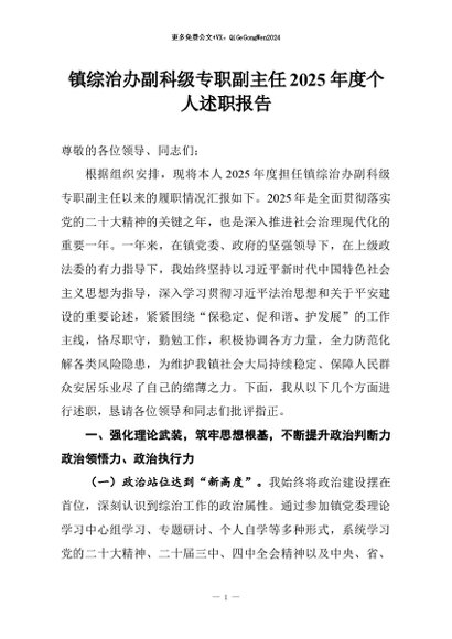 【七哥公文】2026年:镇综治办副科级专职副主任2025年度个人述职报告_副本+更多免费公文+VX:QiGeGongWen2024
