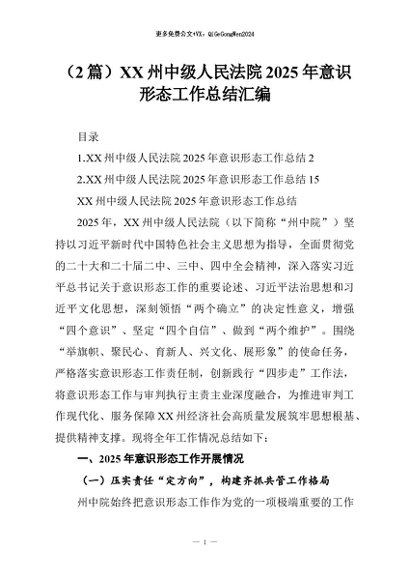 【七哥公文】2026年:(2篇)XX州中级人民法院2025年意识形态工作总结汇编_副本+更多免费公文+VX:QiGeGongWen2024