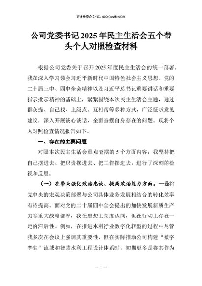【七哥公文】2026年:公司党委书记2025年民主生活会五个带头个人对照检查材料_副本+更多免费公文+VX:QiGeGongWen2024