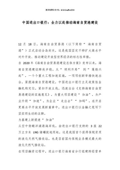 【七哥公文】2026年:中国进出口银行:全力以赴推动海南自贸港建设_副本+更多免费公文+VX:QiGeGongWen2024