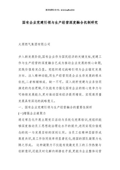 【七哥公文】2026年:国有企业党建引领与生产经营深度融合机制研究_副本+更多免费公文+VX:QiGeGongWen2024