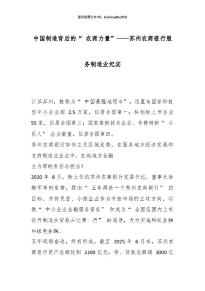【七哥公文】2026年:中国制造背后的“ 农商力量”——苏州农商银行服务制造业纪实_副本+更多免费公文+VX:QiGeGongWen2024