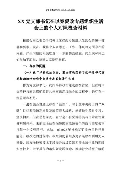 【七哥公文】2026年:XX党支部书记在以案促改专题组织生活会上的个人对照检查材料_副本+更多免费公文+VX:QiGeGongWen2024