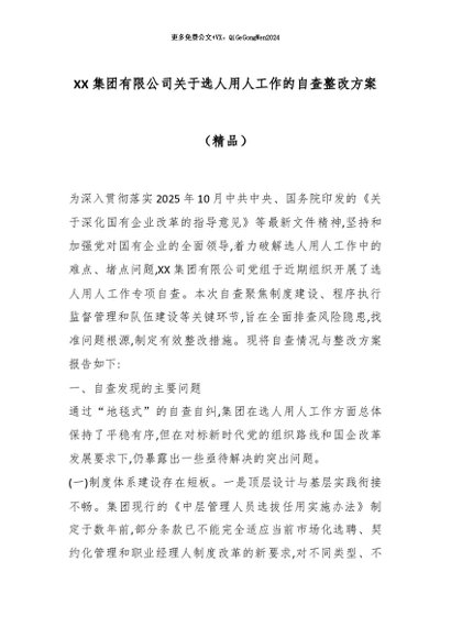 【七哥公文】2026年:XX集团有限公司关于选人用人工作的自查整改方案(精品)_副本+更多免费公文+VX:QiGeGongWen2024